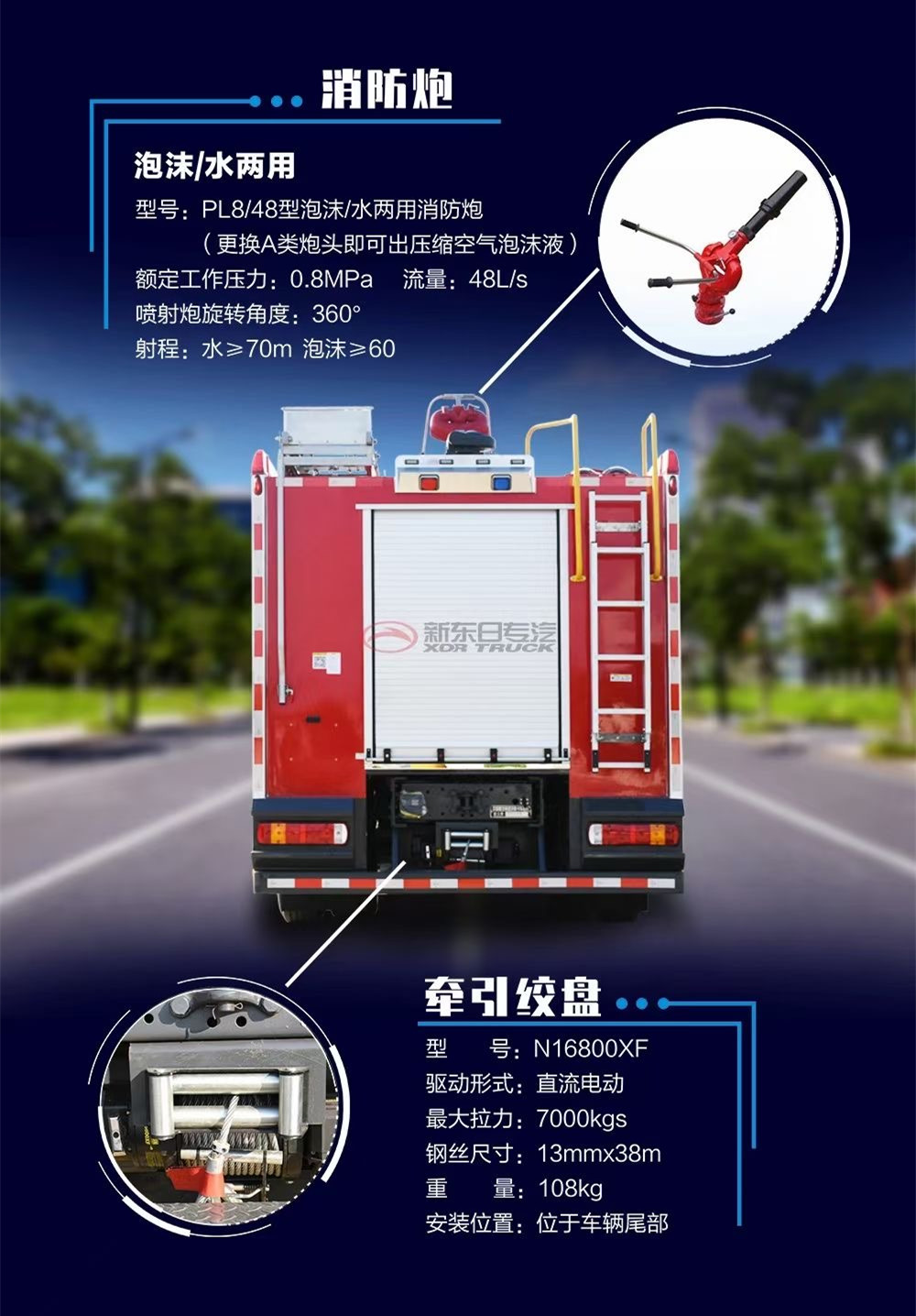 消防車用是上海茸申的消防泵,成都威斯特的消防炮,都是具有3C認證的產品,質量沒的說,非常好。